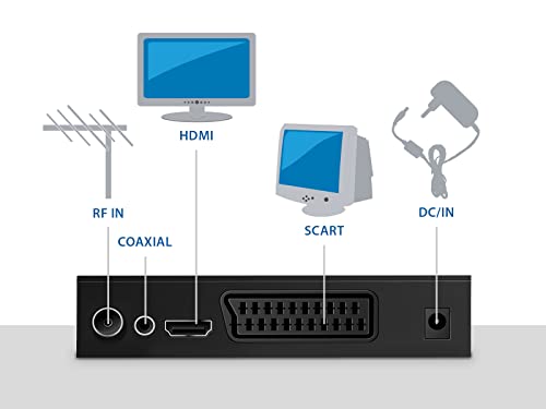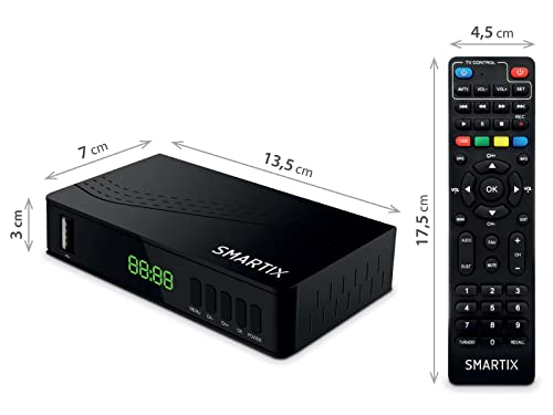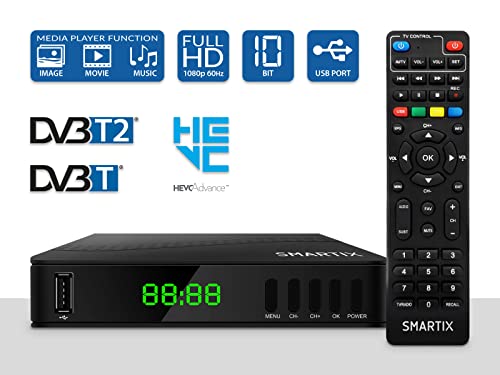 Atlantis SMARTIX DH17 Decoder Digitale Terrestre DVB T2 HEVC H.265 mpeg2/mpeg4 H264 Media Player Porta USB. HDMI e SCART Telecomando Learning, Main 10, Nero
