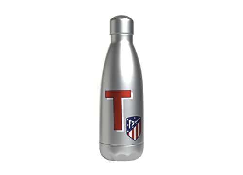 Atletico de Madrid - Bottiglia d'acqua in acciaio inox, chiusura ermetica, con motivo lettera T in rosso, 550 ml, colore metallizzato, prodotto ufficiale (CyP Brands)