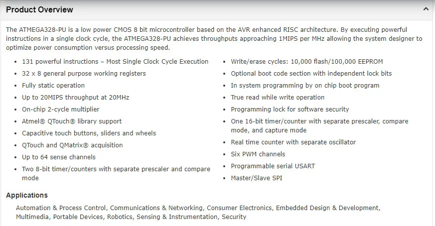 ATMEGA328P-PU DIP-28 ATMEGA328P 8 Bit MCU Low Power High Performance, AVR Series Microcontrollers