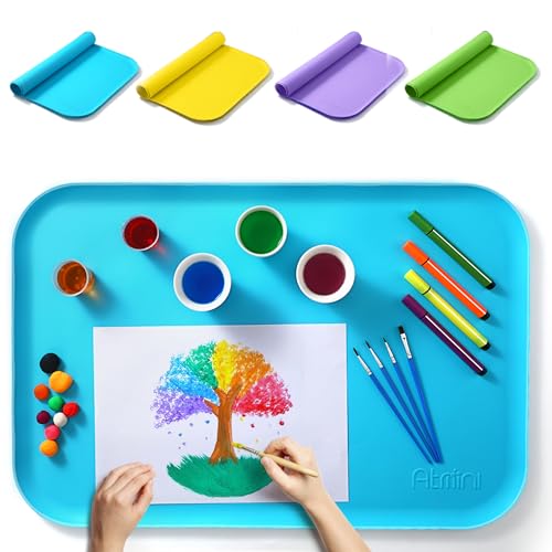 AtMini Tappetino in silicone per artigianato, sabbia, pittura, resina, gioielli fatti a mano, disegno, multiuso con bordi rialzati per mantenere la pulizia (blu)
