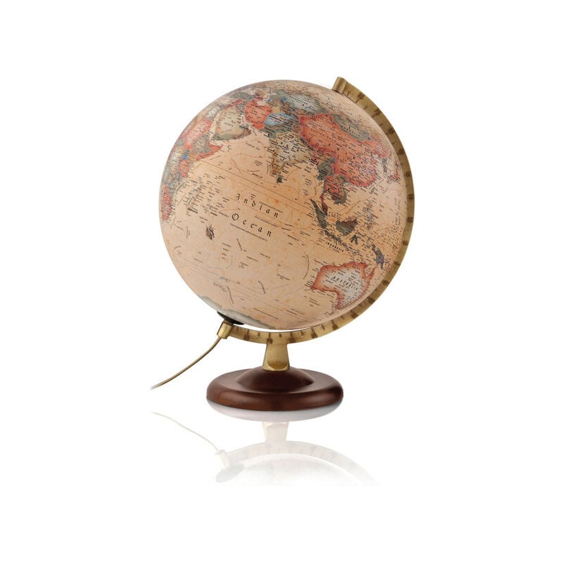 I mappamondi Classic di Atmosphere sono mappamondi dal design classico con l'aspetto nostalgico del passato. Con immagine di antica mappa politica, base in noce, diametro 30 cm con illuminazione.