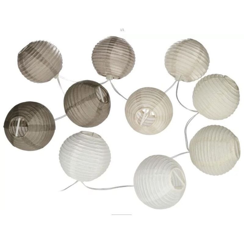 Ghirlanda LED neutra D7,5 cm su batterie. Ghirlanda leggera con 10 palline monocromatiche Grigio/bianco Materiale: pallina di carta, plastica Dimensioni: L. 120 x P. 7,5 cm Batterie: 3 x AA/LR6 Batterie non incluse Lampade non sostituibili Alimentazione: Sulle batterie Oscuratore: Non Garanzia del produttore: 2 ans Colore del cavo: Bianco