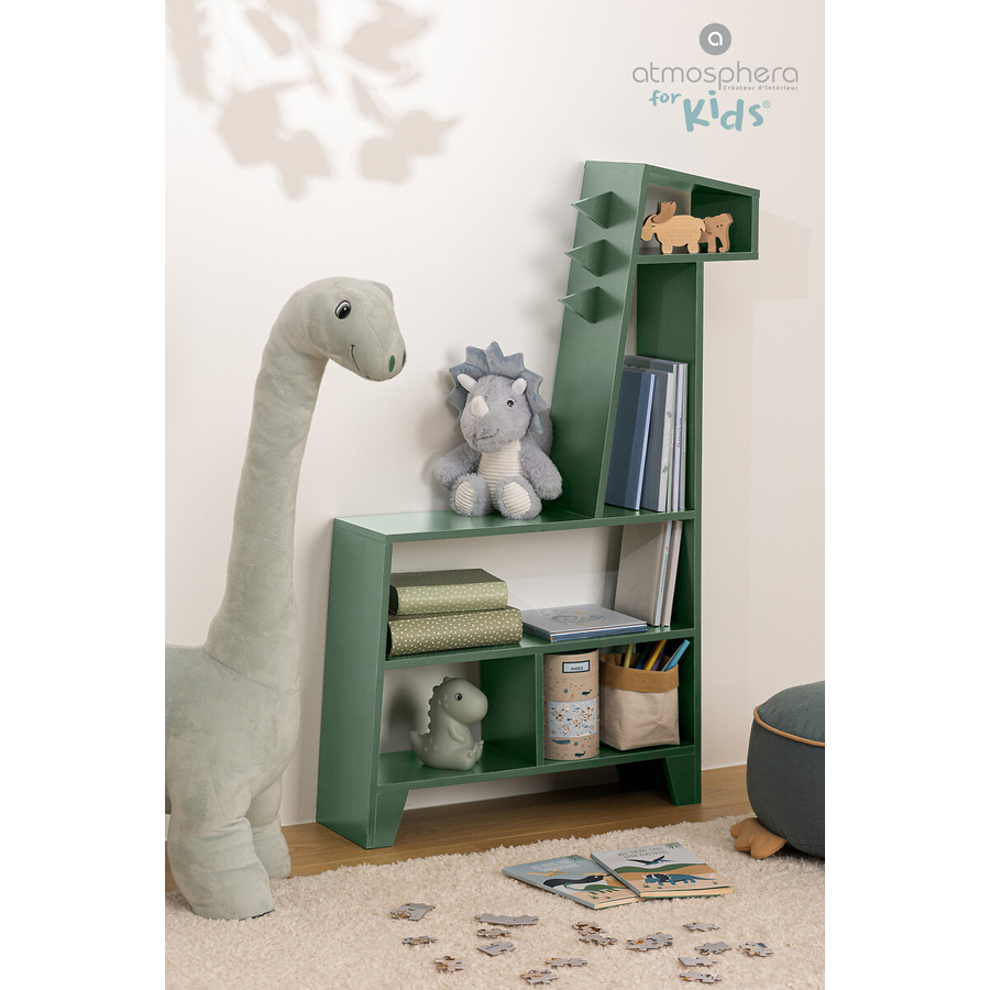 Dettagli del prodotto: Scaffale a terra a forma di dinosauro Con cinque ripiani Con sistema antiribaltamento Materiale e cura: Materiale: Pannello di fibra di legno Materiale dell'impiallacciatura: Carta Dimensioni e peso: Lunghezza: 66 cm Altezza: 100 cm Profondità: 22 cm Peso: 7,00 kg