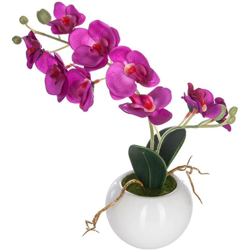 Lunghezza: 30 cm Larghezza: 14 cm Altezza: 11 cm Peso: 0.2 kg Orchidea in vaso di ceramica, poliestere, polietilene, ferro, dimensioni POT: D. 9 x H. 6,5 cm