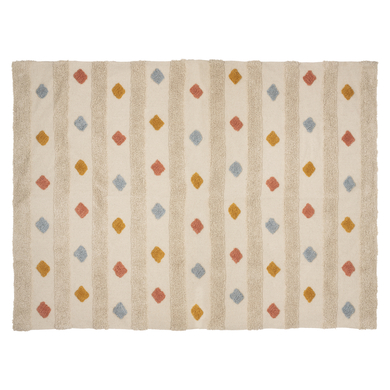 Dettagli del prodotto: Tappeto per bambini in cotone Decorato con diamanti colorati Materiale e cura: Materiale: cotone Dimensioni e peso: Lunghezza: 170 cm Larghezza: 120 cm Altezza: 2 cm Peso: 2,35 kg Incluso nella consegna: 1 tappeto per bambini