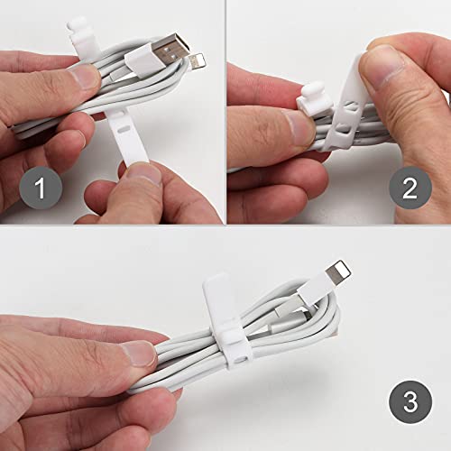 ATNEDCVH - Set di 20 cinghie per cavi in silicone, riutilizzabili, regolabili, fascette multiuso e organizer per cavi (bianco)