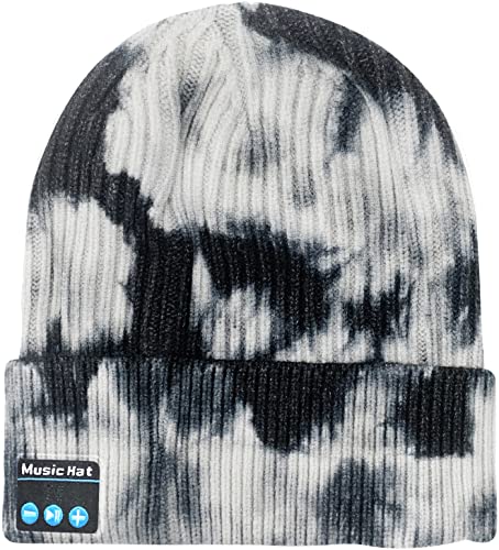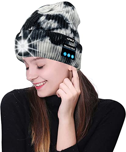 ATNKE Berretto Bluetooth con LED Illuminato, USB Ricaricabile Wireless Musicale Cappello da Corsa Ultra Bright 4 LED Impermeabile Lampada Uso per Sci Escursionismo Campeggio Ciclismo (Tie Dye Nero)