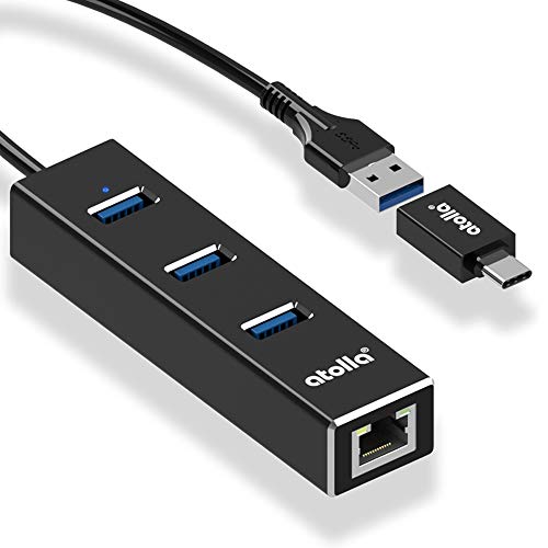 Atolla USB 3.0 Hub Ethernet, aluminum USB C adattatore di rete splitter con 1 porta LAN RJ45 e 3 porte USB dati e un adattatore USB C per MacBook, iMac, Mac Pro/Mini etc