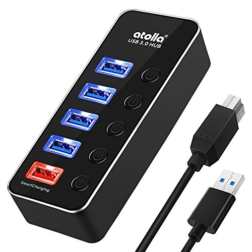 Atolla Hub USB hub, porte USB 3.0 dati + 1 Smart USB charging Port aluminum splitter con adattatore di alimentazione 5 V/a e individuale interruttori on off e 99,1 cm resistente cavo prolunga USB staccabile