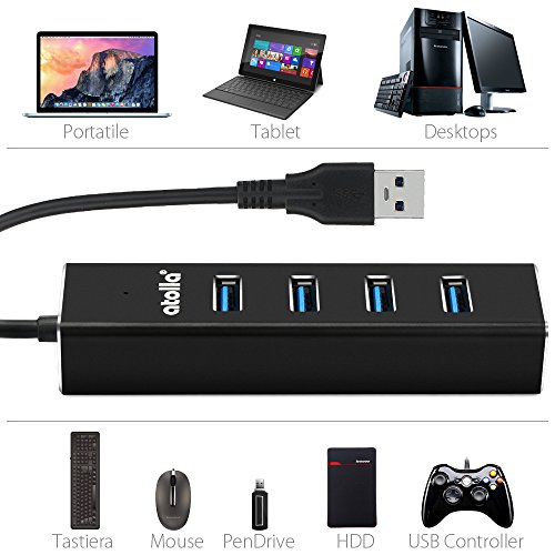 1. Espandere interfaccia USB: atolla USB 3.0 Hub aggiunge quattro interfacce a USB 3.0 per MacBook, Chromebook, computer portatili, console di gioco, e così via, realizza il trasferimento veloce dei dati (fino a 5 Gbps)