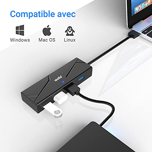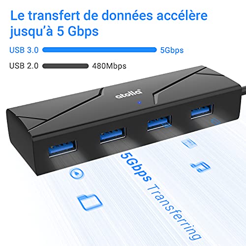 Atolla - Hub USB 3.0 a 4 porte, multipresa USB ultra sottile per trasferimento dati 5 Gbps, compatibile con Macbook, PC, Laptop, Chiavi USB, dischi rigidi esterni