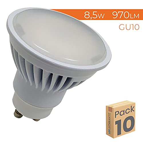 LED ATOMANT Confezione da 10 Lampadina LED GU10 8,5W. Colore Bianco Freddo (6500K). 970 Lumen. Angolo di apertura di 120 gradi.