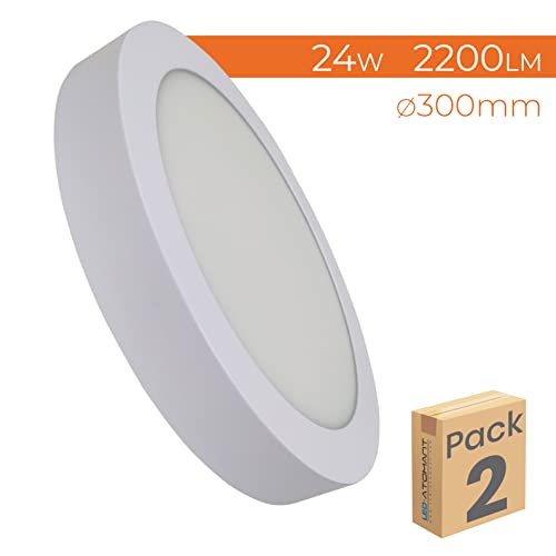 LED ATOMANT Confezione da 2 Plafoniera LED da Soffito Rotonda 300mm, 24W. Colore Bianco Freddo (6500K). 2200 Lumen. Driver incluso.