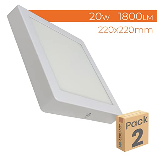LED ATOMANT Confezione da 2 Plafoniera LED da Soffitto Quadrata 220x220mm, 20W. Colore Bianco Freddo (6500K). 1800 Lumen. Driver incluso.