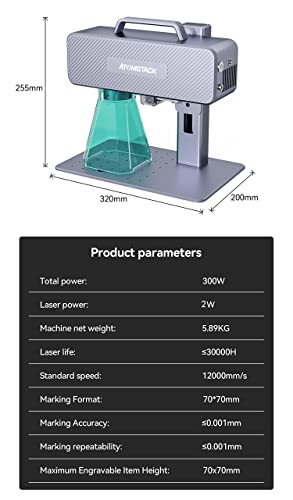 Materiali e portata: il laser a infrarossi ultra lungo da 0,01 a 0,02 mm e ultra fine può rappresentare perfettamente pixel con livello 4K. La marcatrice per incisioni a fibra ATOMSTACK M4 può incidere metalli e leghe comuni, metalli e leghe rari, ossido di metallo, trattamento speciale della superficie, materiale ABS, inchiostro, resina epossidica, pelle, legno (verniciato), ceramica (verniciato), pietra, ecc.