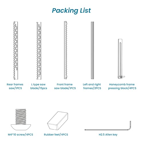 【Design di espansione infinito】ogni pacchetto F3 viene fornito con un connettore. Acquistate due piastre a nido d'ape e montatele rapidamente in una piastra a nido d'ape estesa con una superficie di protezione di 460 x 850 mm. Dopo l'uso di aste di prolunga, è perfetto per tutte le macchine da incisione di diverse marche. Può anche essere utilizzato in una macchina professionale per incisione CO2 per la protezione dal taglio.