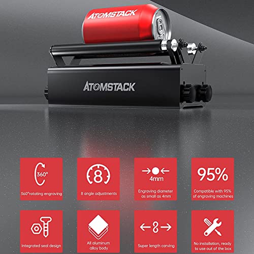 【Perfetto per Incidere Oggetti Rotondi】 Il rullo rotante ATOMSTACK R3 può eseguire intagli di superfici, cilindri lunghi, cilindri di piccolo diametro, intagli a 360 gradi versione super lunga o tagli senza ostruzioni.