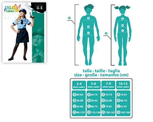Questo costume poliziotto è per una bambina di 10-12 anni con circonferenza petto 75-81 cm, vita da 66 a 70 cm e 81-87 fianchi. Le misure della bambina devono essere comprese tra 145 e 160 cm.