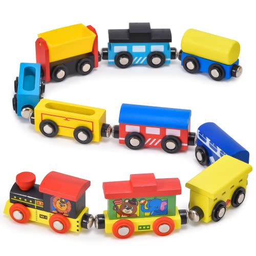SET DI TRENO IN LEGNO PER ANIMALI - Questo treno giocattolo in legno è composto da 12 vagoni con diverse funzioni e animali. Ogni treno è indipendente e collegato da magneti. Il tema delle auto da trasporto e i colori vivaci attireranno rapidamente l'attenzione di tuo figlio e lo porteranno a un divertimento senza fine.