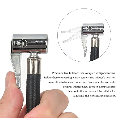 Adattatore per gonfiaggio pneumatici, adattatore per valvola pneumatici, tubo di scarico per la conversione di tubi della degli pneumatici, basta convertire il connettore girevole del compressore in un connettore Lock On. È molto semplice, sia sul tubo dell'aria della per pneumatici che sulla valvola degli pneumatici.