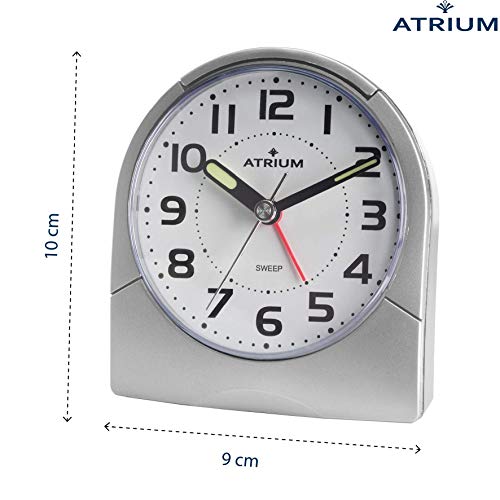 Atrium Sveglia classica analogica al quarzo senza ticchettio con luce e lancette luminose Snooze argento grigio A218-19