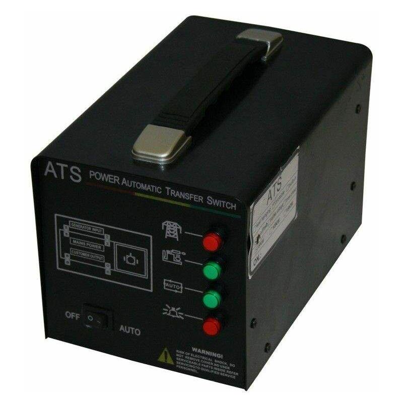 Sistema di trasferimento automatico dell'alimentazione elettrica ATS 230 V 5 kW massimo Questa scatola si collegherà al tuo gruppo elettrogeno (che deve essere compatibile e possedere la presa ATS adeguata). Avvierà il gruppo elettrogeno appena la rete elettrica sarà staccata (dopo un guasto di corrente ad esempio). Al ritorno della rete elettrica, la scatola ATS spegnerà il generatore e si trasferirà sulla rete elettrica Questa scatola supporta un consumo massimo di 5 kW, NON devi mai superarlo, altrimenti rischi di danneggiare la scatola ATS. L'installazione è necessariamente effettuata da un elettricista ufficiale. Non si divertirti a giocare con le alimentazioni elettriche, rischieresti la vita! Decliniamo del resto qualsiasi responsabilità se l'impianto non è stato effettuato da personale autorizzato. Peso: 2,8 kg Potenza massima: 5 kW Tensione: monofase 230 V La scatola ATS è compatibile ad esempio con i riferimenti Varan Motors 92631 Collegamento: Attacco principale: A