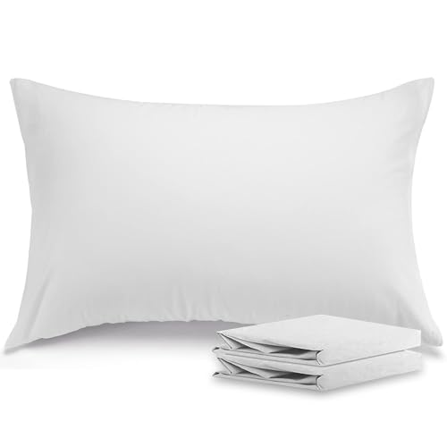 ATsense Federe Cuscino Letto 40x60 cm, Set di 2, 100% Cotone Lavato, Copricuscino Letto Bianco Con Cerniera, Federa Cuscino Certificata OEKO-TEX