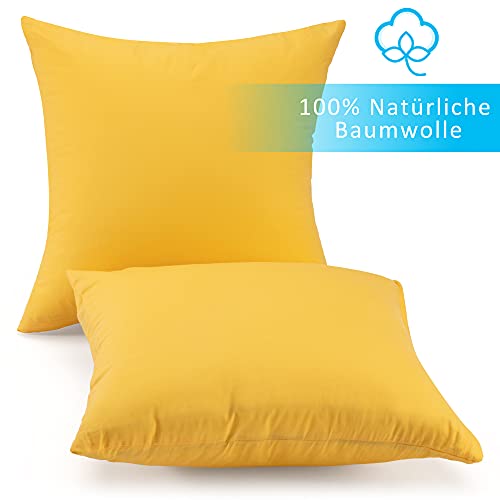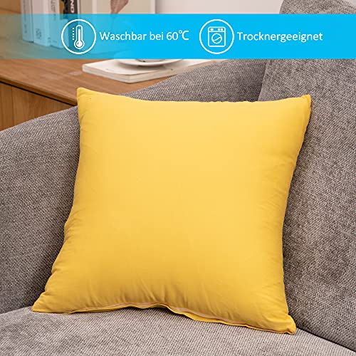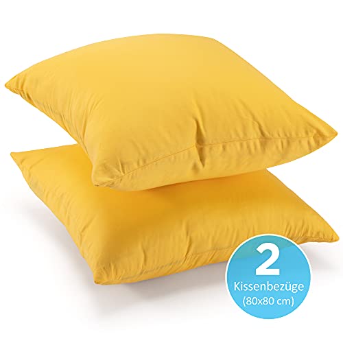 ATsense Federe Cuscino Letto Set Di 2, 80x80 cm 100% Cotone, Federe Cuscino Con Cerniera, Federa Morbidissima, Certificata Oekotex, Adatta a Chi Soffre Di Allergie, Giallo Marina