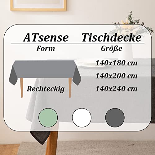 ATsense Tovaglia grigio scuro, tovaglia effetto lino, 100% cotone lavato, rettangolare, 140 x 200 cm