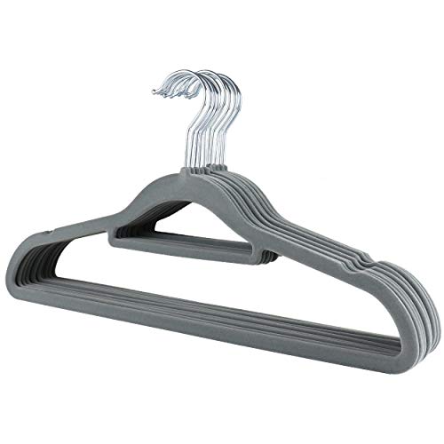 Attaccapanni salvaspazio antiscivolo, in velluto floccato, con barra per pantaloni, Grey, 42 cm
