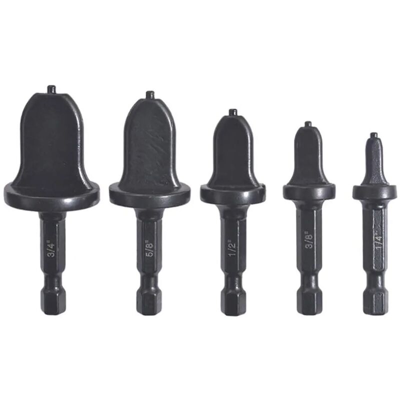 Una linea completa di strumenti di forgiatura semplifica l'espansione dei tubi HVAC. Preservare la duttilità di rame/alluminio durante la forgiatura per evitare crepe e perdite. 5 tipi di dimensioni tra cui scegliere da:con il diametro del tubo HVAC più comune: 1/4 di pollice 3/8 di pollice 1/2 di pollice 5/8 di pollice 3/4 di pollice. Adatto per kit di crimpatura standardizzato in rame duro e morbido, facile da brasare. Il tappo forgiato fornirà una grande profondità di stampaggio per ottenere una vestibilità perfetta. Caratteristiche: 100% nuovo di zecca e di alta qualità. Realizzato con materiali di alta qualità, resistente. Facile da usare e buone prestazioni, il tuo buon aiuto per il lavoro e la vita. Quantità sufficiente, specifiche complete, perfetto per completare il tuo funziona. Durante l'installazione del condizionatore, allargare il tubo di rame per collegare tra loro i due tubi di rame. (Deve essere installato su un trapano a mano). Materiale: acciaio per cuscinetti