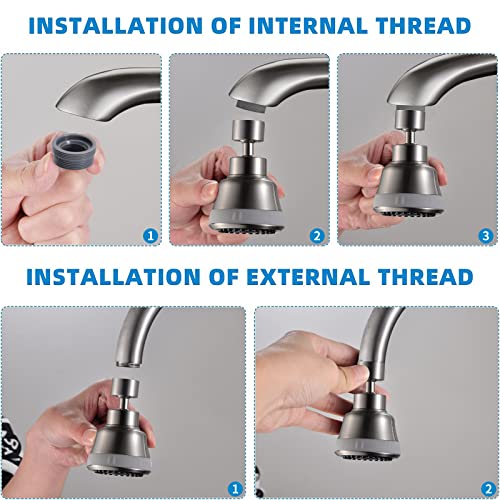【Doccetta per Lavandino 360° Gradi】L'adattatore rotante del rubinetto è girevole a 360 gradi e a 75 gradi su e giù, in modo che il flusso d'acqua possa raggiungere ogni angolo del bagno o del lavello della cucina, con quattro diverse modalità di flusso d'acqua, che rendono conveniente la pulizia.