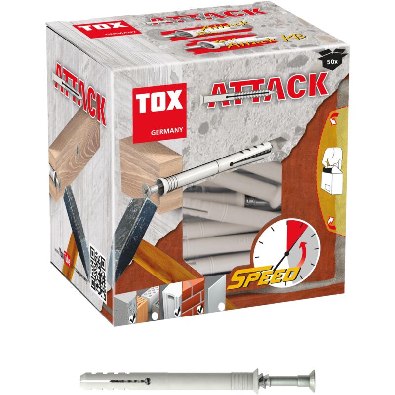 TOX Attack 6x40 mm - 50 pezzi - 017102101 Numero articolo 017102101 EAN 4049563004809 Peso di spedizione 0,23 kg DESCRIZIONE Caratteristiche Solo per l'intaglio: facile e veloce Per componenti in legno La chiusura drive-in impedisce lo spanciamento prematuro Filettatura a dente di sega Installazione a pressione rapida ed economica La vite a chiodo può essere facilmente avvitata e rimossa a seconda delle esigenze Descrizione e campo di applicazione Corpo espandibile in 2 parti con blocco drive-in Testa svasata e azionamento PZ Vite per chiodi preassemblata e zincata con filettatura a dente di sega Lavorazione e installazione Si chiude a filo della parte di fissaggio Nei mattoni forati, il corpo di espansione deve essere espanso in almeno una nervatura interna e forato senza impatto Installazione a pressione