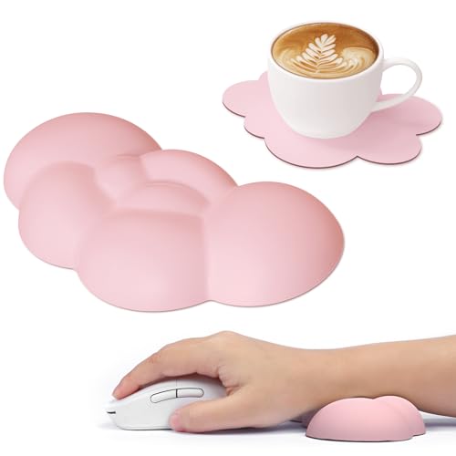 Attack Shark Poggiapolsi Cloud Mouse con Sottobicchiere, Polso Ergonomico per Mouse con Massaggio, Supporto per il Polso, Grazioso Accessorio da Scrivania per Casa, Ufficio, Giochi - Rosa Carne