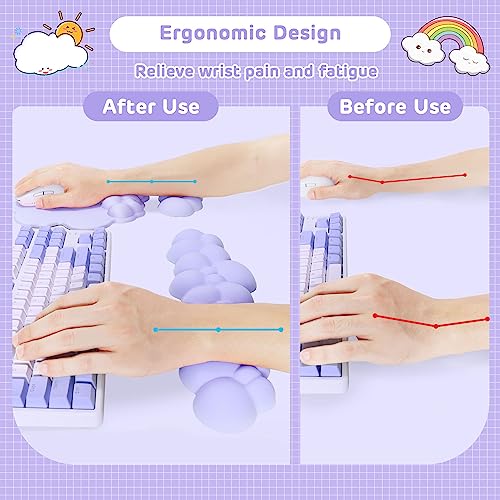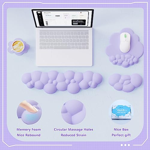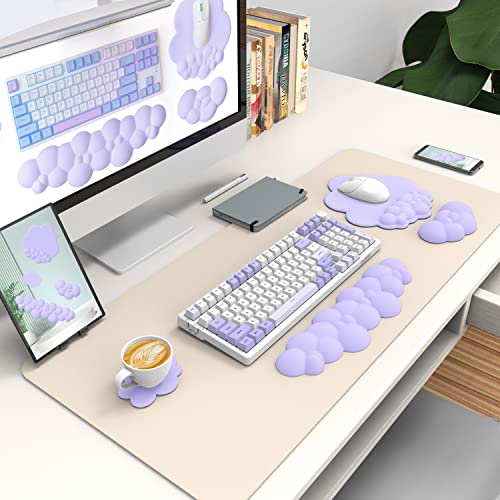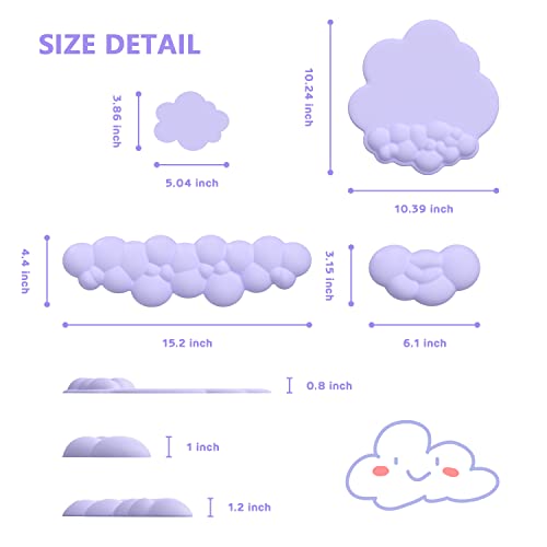 Attack Shark Set Poggiapolsi a Forma di Nuvola con Sottobicchiere, Supporto per Polso del Mouse, Base Antiscivolo, Ergonomico, Accessorio da Scrivania per Tastiera, Giochi, Ufficio, Casa - Viola