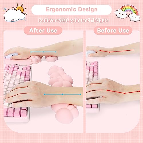 Attack Shark Set Poggiapolsi a Forma di Nuvola con Sottobicchiere, Supporto per Polso del Mouse, Base Antiscivolo, Ergonomico, Accessorio da Scrivania per Tastiera, Giochi, Ufficio, Casa - Rosa Carne