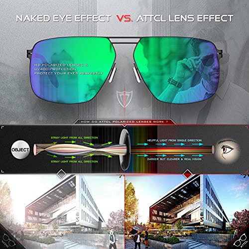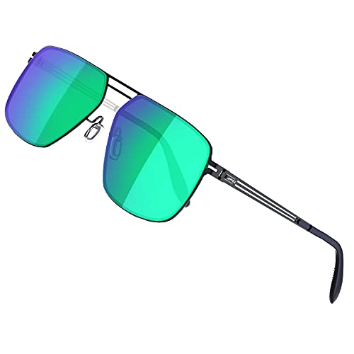 ATTCL Occhiali da sole polarizzati da uomo - Montatura rettangolare leggera in acciaio inossidabile con protezione UV400 9771 Black+Green