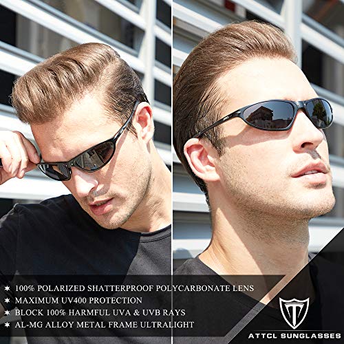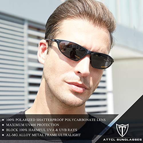 ATTCL Occhiali da sole sportivi polarizzati guida pesca golf sport occhiali sportivi protezione UV400, Nero a specchio., Medium