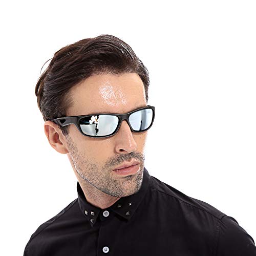 ATTCL, occhiali da sole da uomo, polarizzati, sportivi, guida, golf, corsa, montatura super leggera nero/argento M