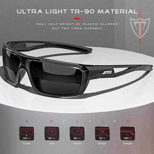 ATTCL Polarizzate Occhiali da sole da uomo con montatura in TR90 rettangolare classico da uomo J2021 Black