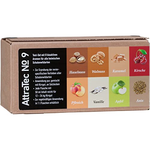 Attratec No. 9 esche in fino a 8 diversi gusti sono molto efficaci. Il set di provette con 8 bottiglie da 50 ml in diversi gusti e odori è ideale per scoprire le preferenze del bosco di casa.