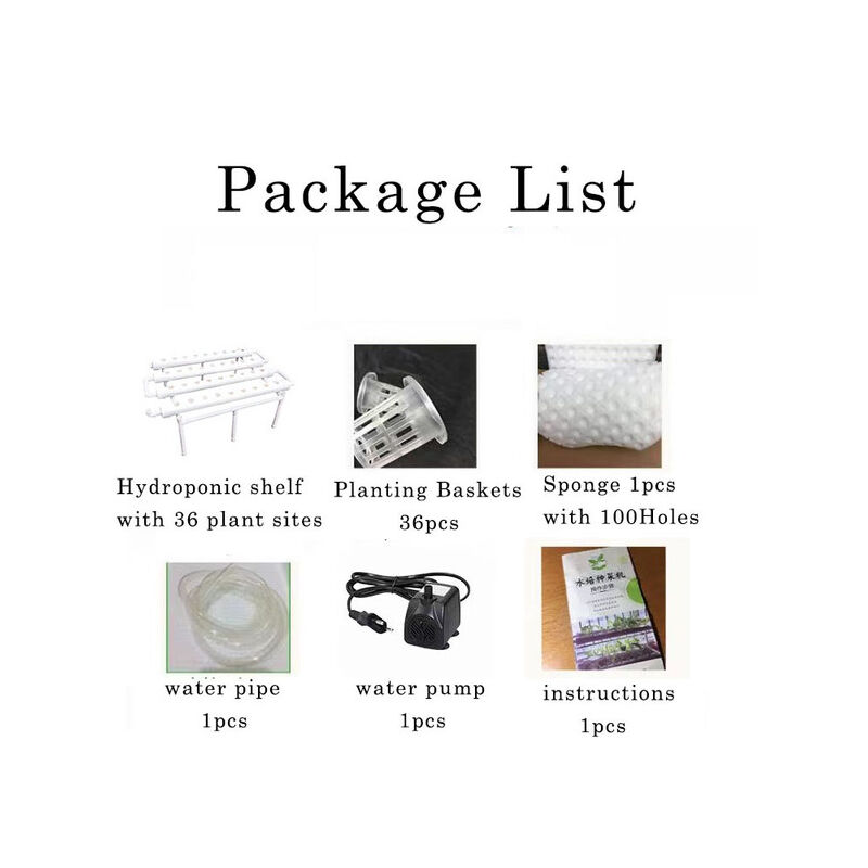 Specifiche tecniche: Pompa di Tensione: 110-220VColore: BeigeMateriale: PlasticaDimensioni: 89x36x70CM/35x14.2x27.5 polliciTubo di diametro: 63 millimetriFormato del foro: 32mmGamba diametro: 32 millimetri Caratteristiche: 1. 36 pianta sito2. Perfect collegamento di supporto e tubo3. Advanced interno di blocco di disegno4. Food grado materiale5. S stile di flusso6. Water è all'interno del sistema in modo che le piante possono riparo di acqua dalla luce del sole. Nota Si può avere bisogno di preparare un reservoirtank. Non-trasparente carro armato e con la copertura è migliore. Il capicity è migliore 10-15LE avete bisogno di portare la propria striscia di alimentazione.A causa del grande volume dopo il insallation, per il trasporto conveniente, non abbiamo installare esso. Avete bisogno di installare da soli. Questo sarà spendere un piccolo sforzo. Cornici e articoli da esposizione ① 1pcs * siti di pianta Idroponica mensola con 36②Planting Cesti di 36pcs③ 1pcs * Spugna con 100 Fori④