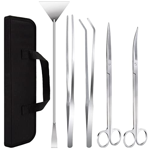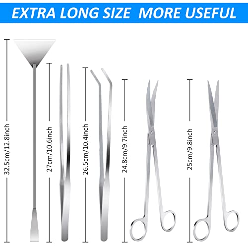 Strumenti per acquari 5 in 1: Pinzette dritte,pinzette curve,forbici dritte,forbici curve,spatola. Viene fornito con una bella custodia che si imballa bene quando non in uso.