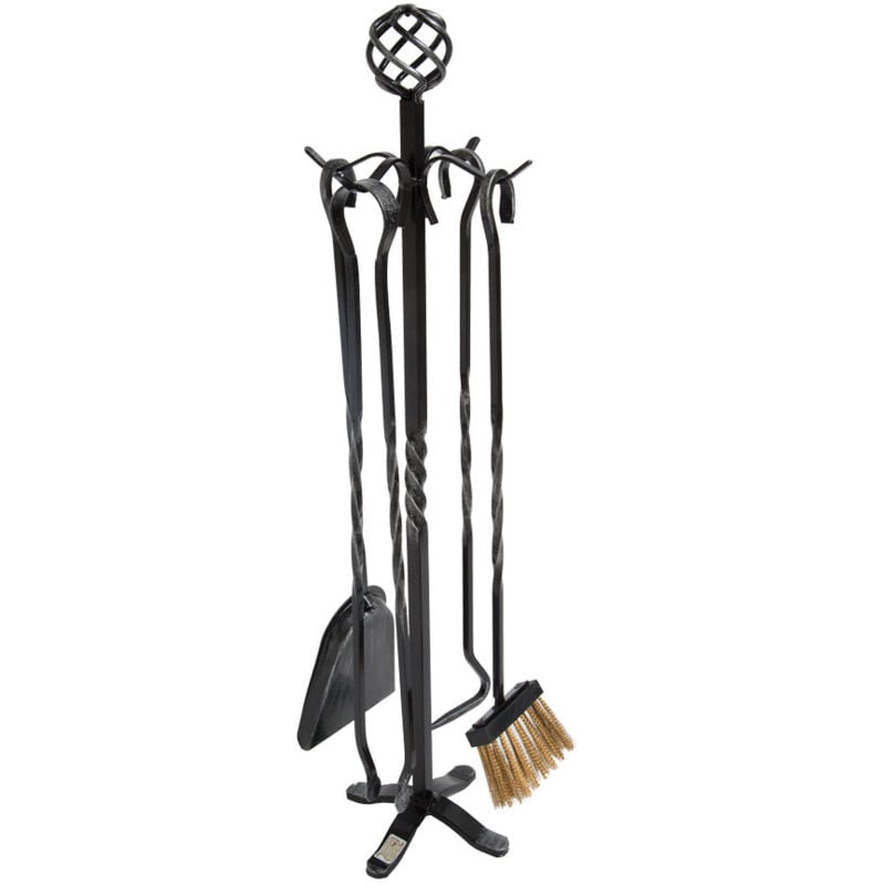 SET ATTREZZI DA CAMINO FLORENCE Ø 23 x 80H ACCESSORI CAMINETTO Set di accessori per il caminetto in ferro battuto nero con patinature argento . Il kit ”Florence” è caratterizzato da una colonna ritorta sormontata da un'impugnatura con elementi intrecciati, sia l'uno che l'altro sono i motivi più tradizionali del ferro battuto Il supporto e gli attrezzi presentano al centro delle forgiature frutto di lavoro artigiano. Il kit comprende il supporto, una paletta e una scopetta in setole d'ottone per la pulizia del camino, attizzatoio per ravvivare la fiamma e un paio di pinze per la movimentazione della legna. Dimensioni: Ø 23 ↔ x 80 ↑ cm Materiale: Ferro Colore: Nero patinato Argento Consigliato per caminetti rustici, country e di pietra.