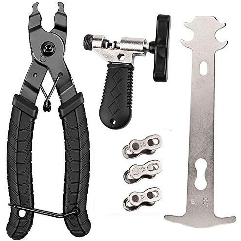 Sgancio rapido per catena della bicicletta: il bordo liscio non danneggerà la catena della bicicletta, facile da usare senza attrezzi, adatto per catene da bicicletta 6/7/8/9/10.< /li> Catena per bicicletta Strumento indicatore di usura: ti consente di valutare rapidamente l'usura e l'allungamento della catena, ti aiuta a decidere se cambiarne una nuova o meno < li>Pl Bike Chain Link Pliers: per una rapida rimozione delle maglie di collegamento, strumento avanzato per l'apertura e chiusura, dispositivo di rimozione della maglia della catena e connettore. Spl Separatore per tagliacatena della bici: molto intelligente, facile da spezzare, facile da riconcatenare, l'esclusiva scanalatura sulla parte superiore ti consente di vedere fino a che punto sei stato espulso il piolo e rimuovere la catena tagliata con il piolo. /li> Tool Premium Bike Chain Tool: realizzato in acciaio K5 di alta qualità + acciaio al carbonio + acciaio al manganese, a volte il metallo può ossidarsi. Descrizione del