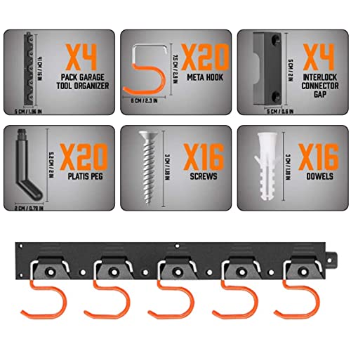 [Sistema di archiviazione a parete regolabile] Supporto da parete per attrezzi da garage da 160 cm, composto da 4 strati in ABS, 20 ganci metallici antiscivolo e strumenti di installazione. È il perfetto portautensili da parete per garage.