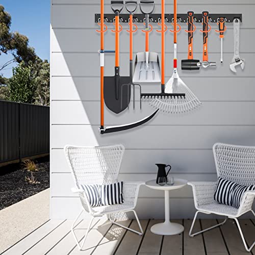 [Forte e antiscivolo] Il sistema di stoccaggio degli attrezzi da giardino è realizzato in ABS, che non arrugginisce. Forte, impermeabile, idratante, resistente all'umidità, anticorrosione e viti sufficienti per garantire stabilità. I proprietari di dispositivi a parete possono essere utilizzati all'aperto. Ogni gancio è dotato di un rivestimento antiscivolo per garantire che nessun oggetto affondi.