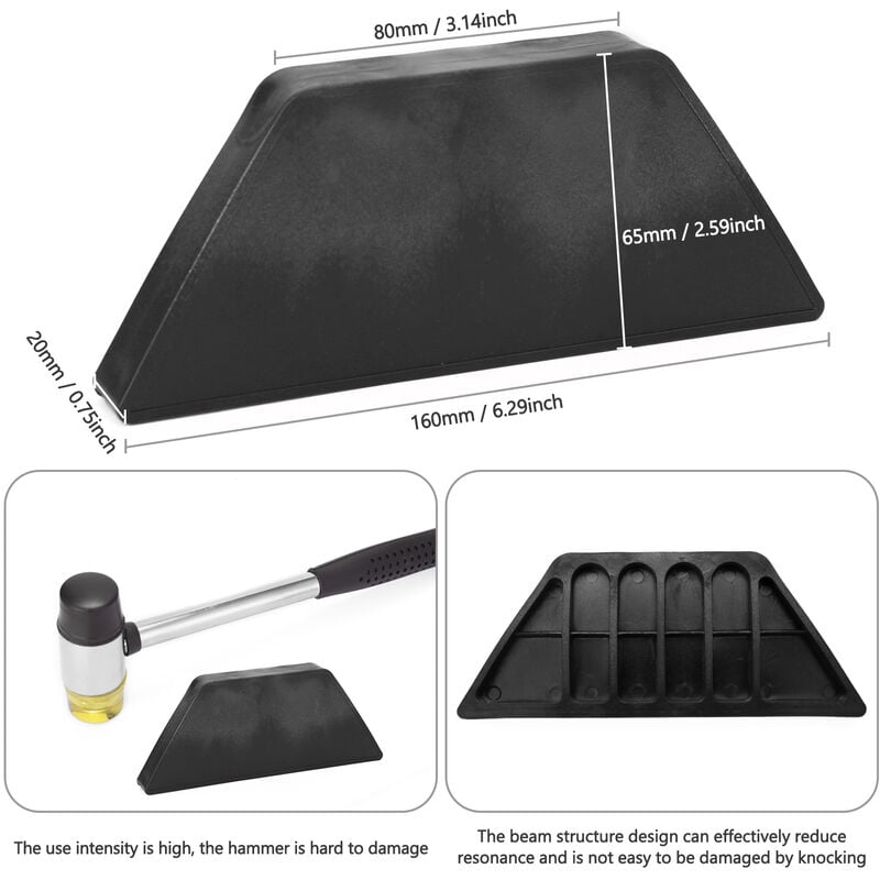 E uno strumento indispensabile per la posa di pavimenti in legno e laminato. Caratteristiche: Facilitare l'installazione della pavimentazione di un'ampia area di pavimentazione. Potrebbe farti installare il pavimento in legno laminato piu comodo e facile. Un lato e un martello di gomma, un altro e un martello solido, la maniglia forgiata nella testa del martello, che e potente da usare e non cadra. Il blocco di maschiatura puo essere inserito nella linguetta della tavola quando si toccano due assi insieme. Questo set di kit di installazione per pavimenti in legno aiuta nella maschiatura delle assi in posizione, che aiuta a prevenire i danni durante l'installazione del sistema di bloccaggio della linguetta e delle scanalature. I distanziatori del pavimento possono regolare lo spessore del gioco utilizzando due distanziatori. Specifiche: Colore nero Materiale: PVC + polipropilene + plastica Tipo: 1,2 (opzionale) Tipo 1: blocco di maschiatura + barra di estrazione (265 mm)