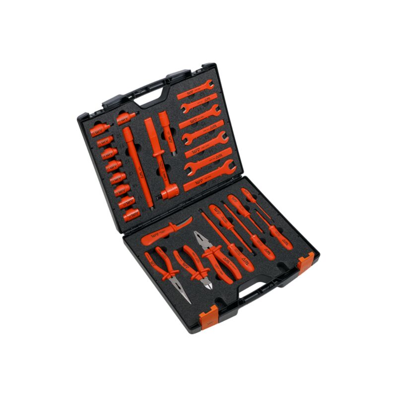Kit che fa parte di una gamma completa di utensili manuali Premier, adatti per l'uso professionale quotidiano. Bussole, chiavi, inserti cacciaviti pinze e accessori in acciaio al Cromo Vanadio temprato e temprato,c romato per resistenza alla corrosione. Ogni componente è completamente rivestito ed isolato secondo gli standard IEC 60900 Categoria C per la protezione da scosse elettriche fino a 1500 V CC e 1000 V CA. Cricchetto reversibile da 1/2", bussole, prolunghe, chiavi inglesi, punte esagonali, cacciaviti, pinze, tagliacavi. Ideale per i tecnici che lavorano su moderni veicoli ibridi ed elettrici (1500V DC Safe Live Working). Adatto anche per elettricisti e altri mestieri (funzionamento in tensione sicuro a 1000 V CA). Fornito in custodia. Contenuto: Chiave a cricchetto da 1/2";