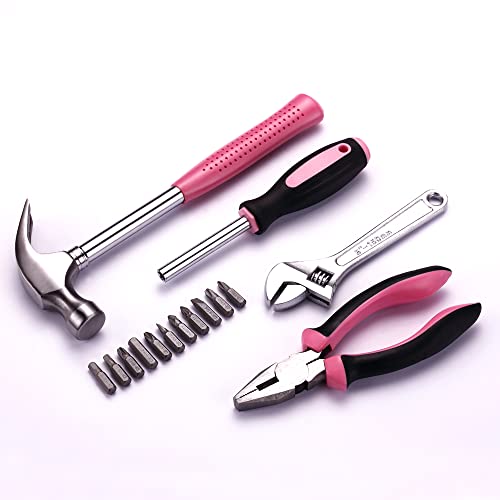 Attrezzi da lavoro domestico, set di attrezzi - 15 pezzi di Trimate, il Set include - Martello, Cacciavite, Pinza (Kit per casa, ufficio o macchina) (Rosa)